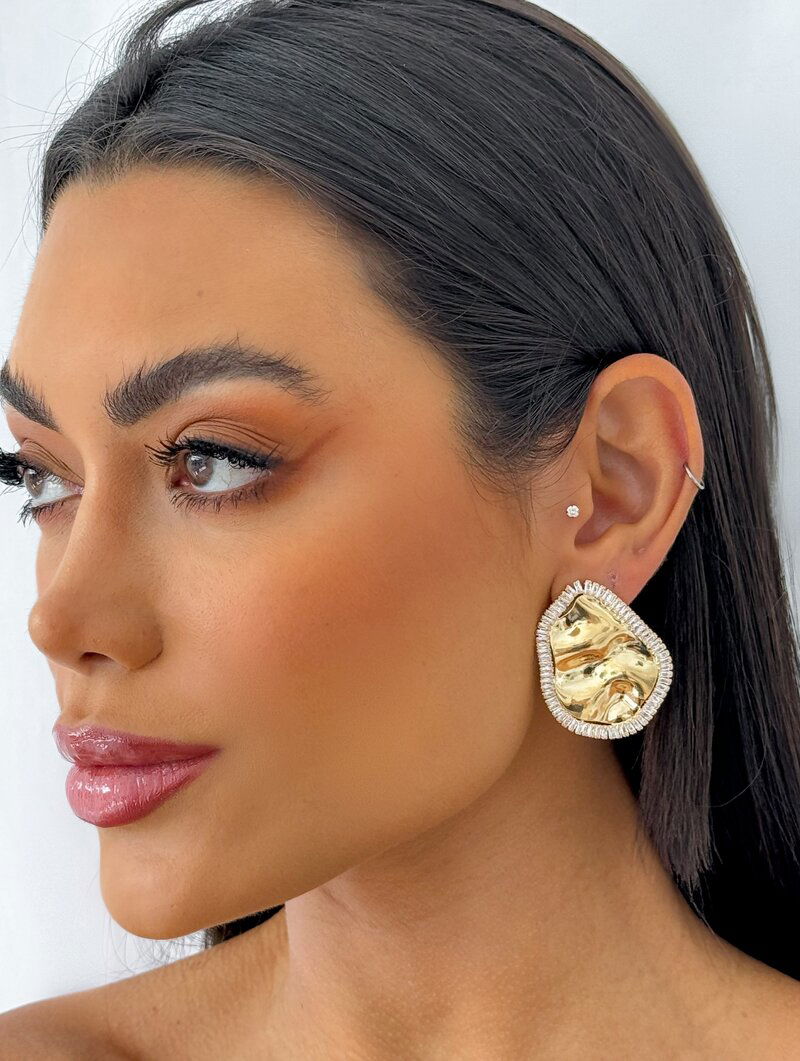 Brinco Folheado a Ouro 18k e Prata Botton Orgânico com Borda de Navetes