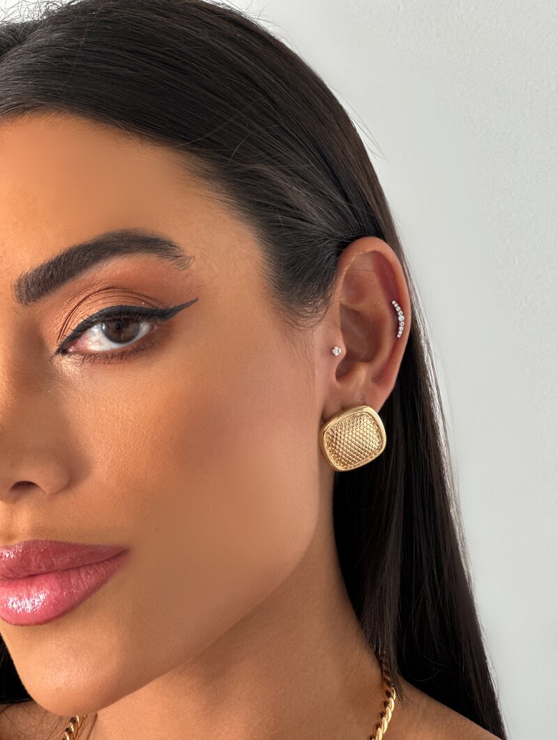 Brinco Folheado a Ouro 18k e Prata Botton Quadrado Texturizado