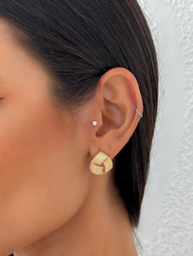 3. Brinco Folheado a Ouro 18k e Prata Botton Três Fios Estonados