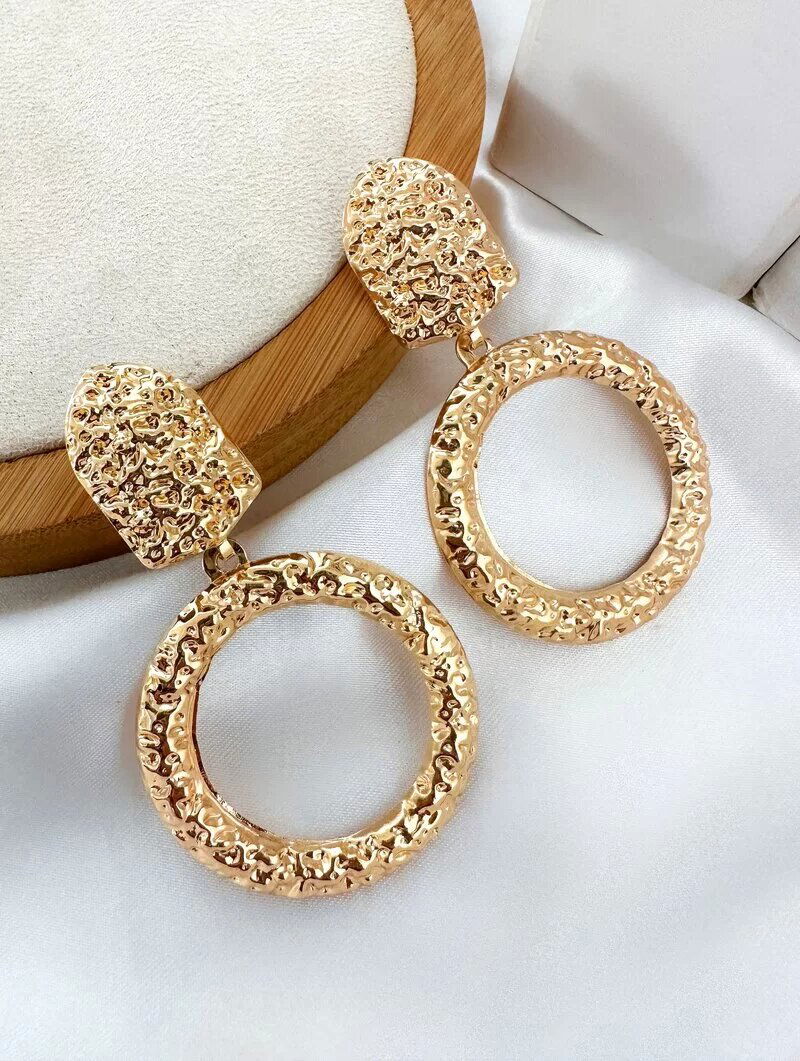 Brinco Folheado a Ouro 18k e Prata Circulo com Botton Martelado