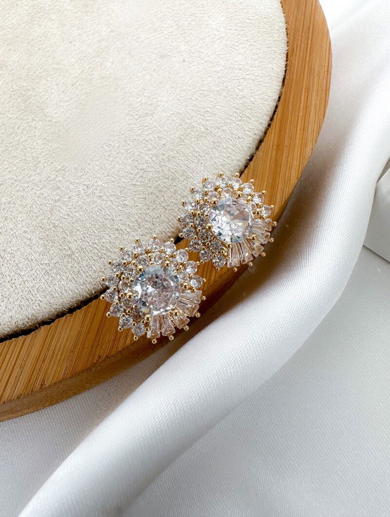 3. Brinco Folheado a Ouro 18k e Prata Circulo Cravejado com Navetes