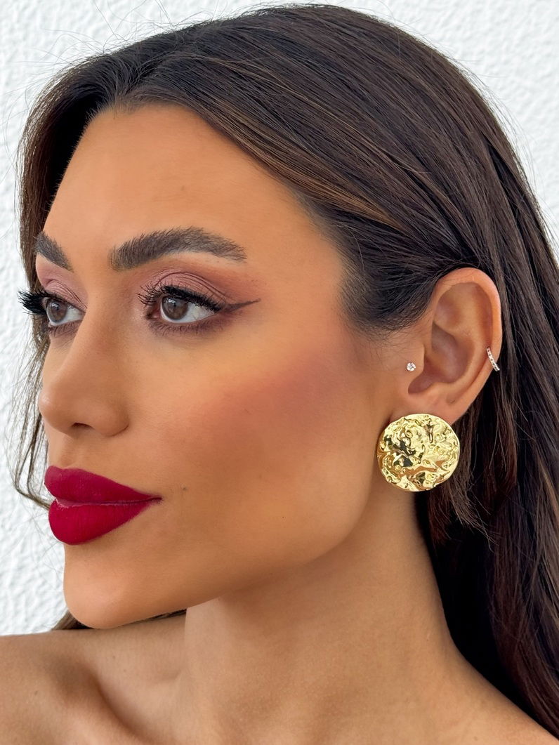 2. Brinco Folheado a Ouro 18k e Prata Círculo Martelado