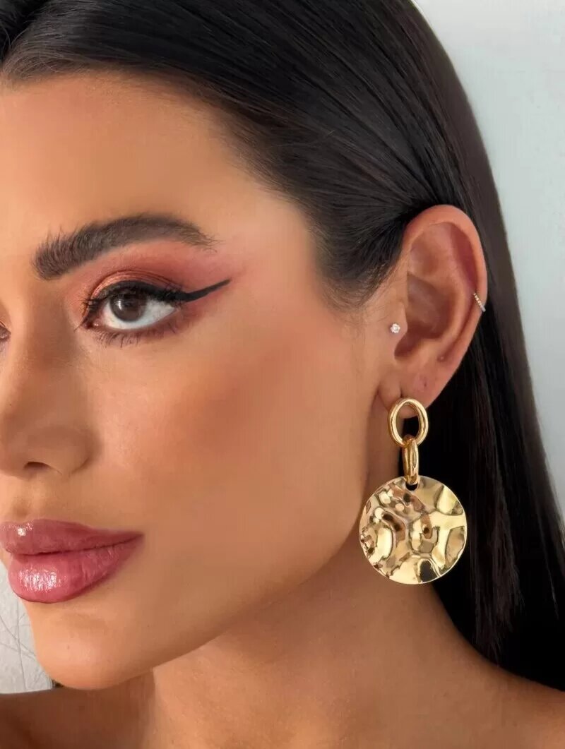 3. Brinco Folheado a Ouro 18k e Prata Circulo Martelado com Ponteira Elos