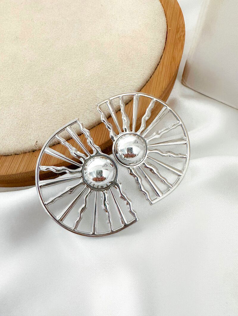 brinco folheado a ouro 18k e prata circulo meia lua com detalhe vazado