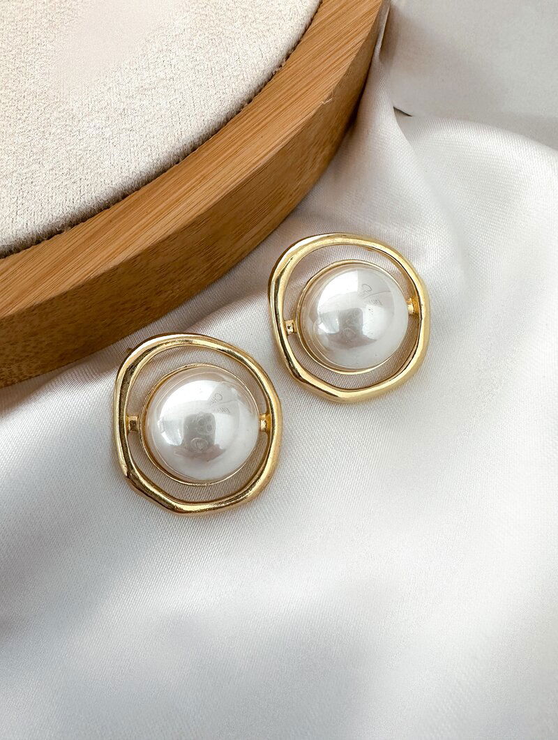 3. Brinco Folheado a Ouro 18k e Prata Circulo Vazado com Pérola Central