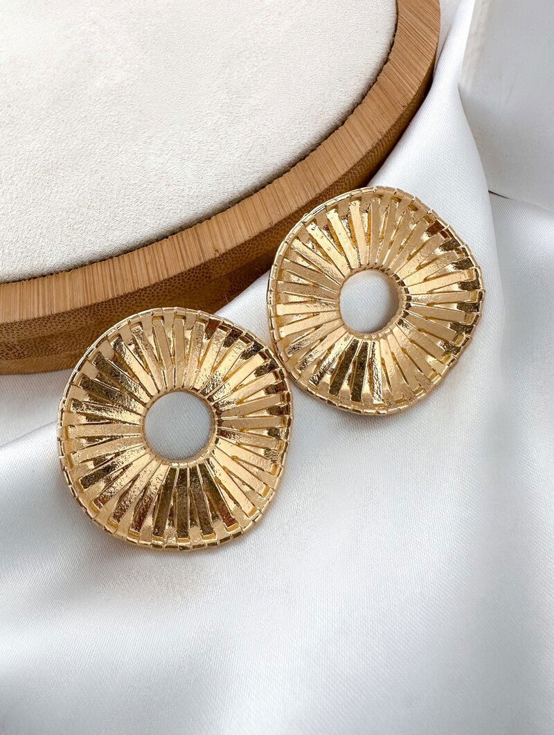 3. Brinco Folheado a Ouro 18k e Prata Circulo Vazado Texturizado
