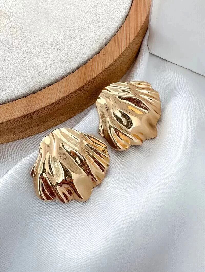 Brinco Folheado a Ouro 18k e Prata Concha Martelada Lisa