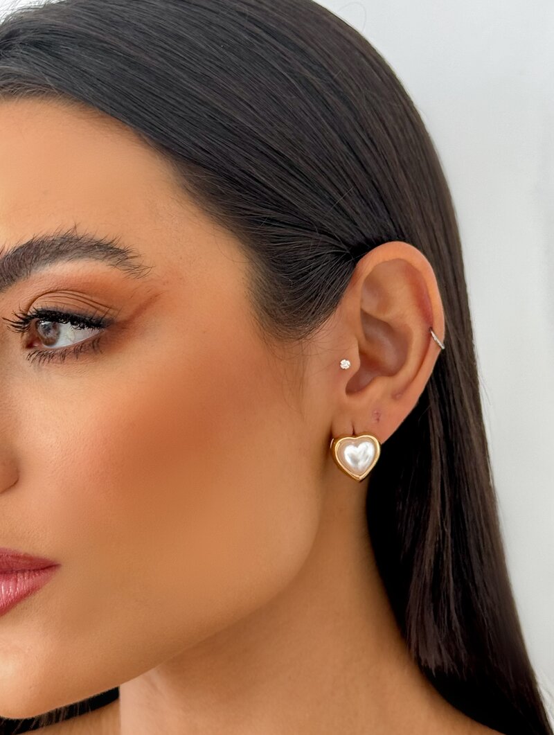 3. Brinco Folheado a Ouro 18k e Prata Coração com Pérola