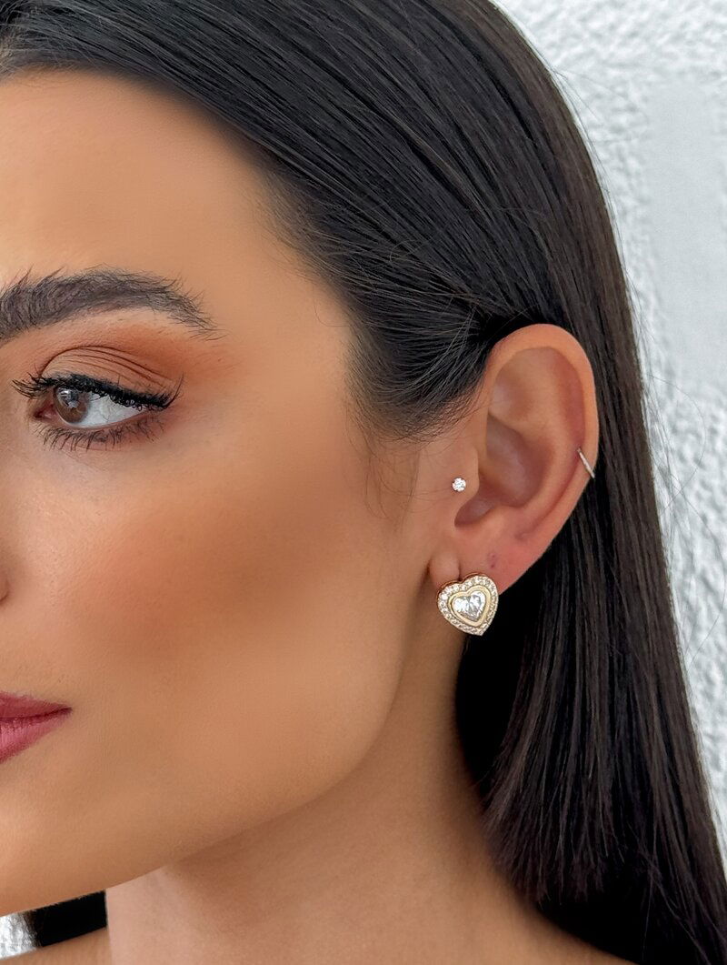 3. Brinco Folheado a Ouro 18k e Prata Coração com Zircônia e Borda Cravejada