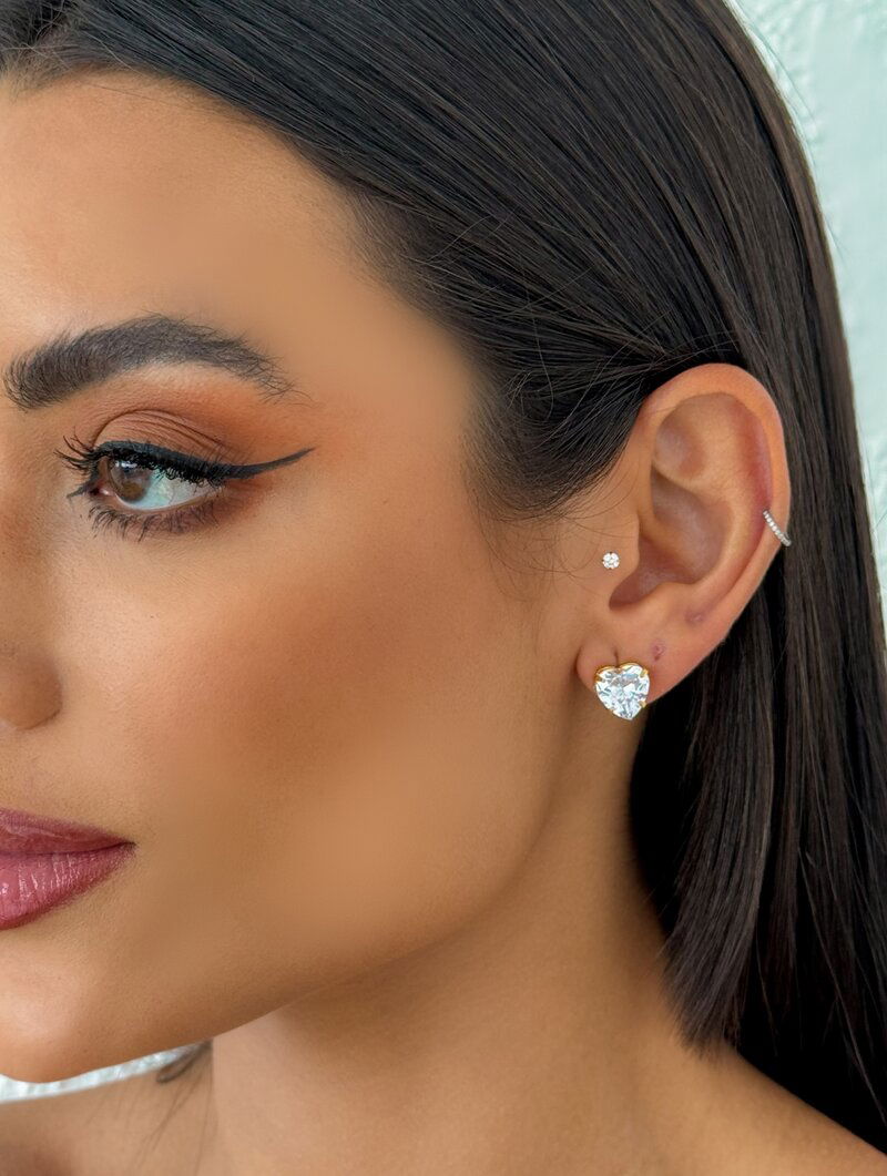 3. Brinco Folheado a Ouro 18k e Prata Coração de Zircônia Cristal