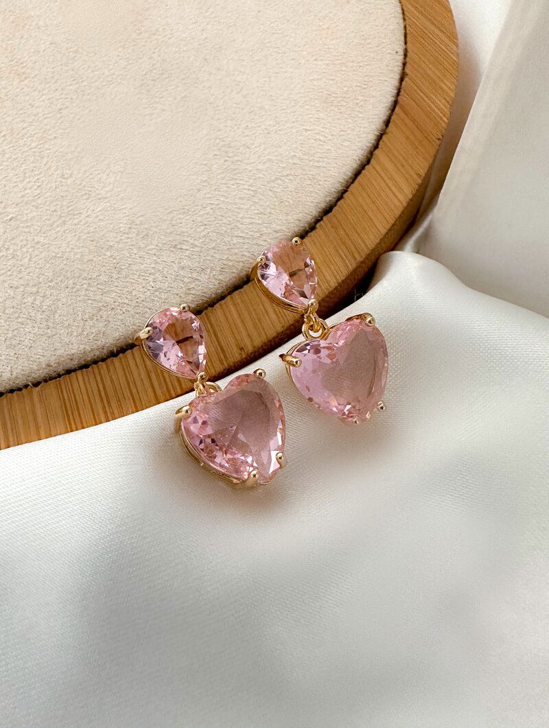 3. Brinco Folheado a Ouro 18k e Prata Coração e Gota de Zircônia
