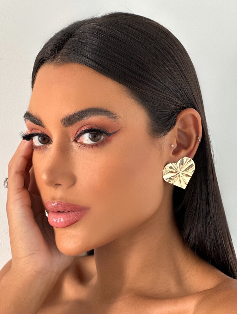 3. Brinco Folheado a Ouro 18k e Prata Coração Martelado
