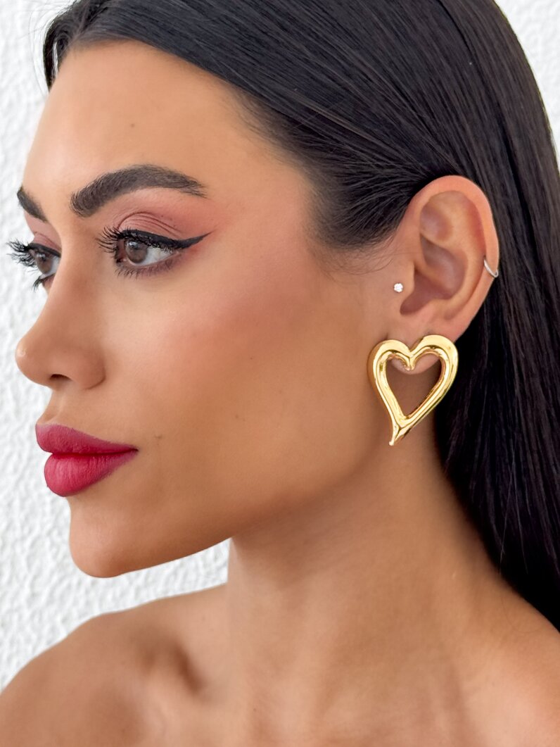 3. Brinco Folheado a Ouro 18k e Prata Coração Vazado