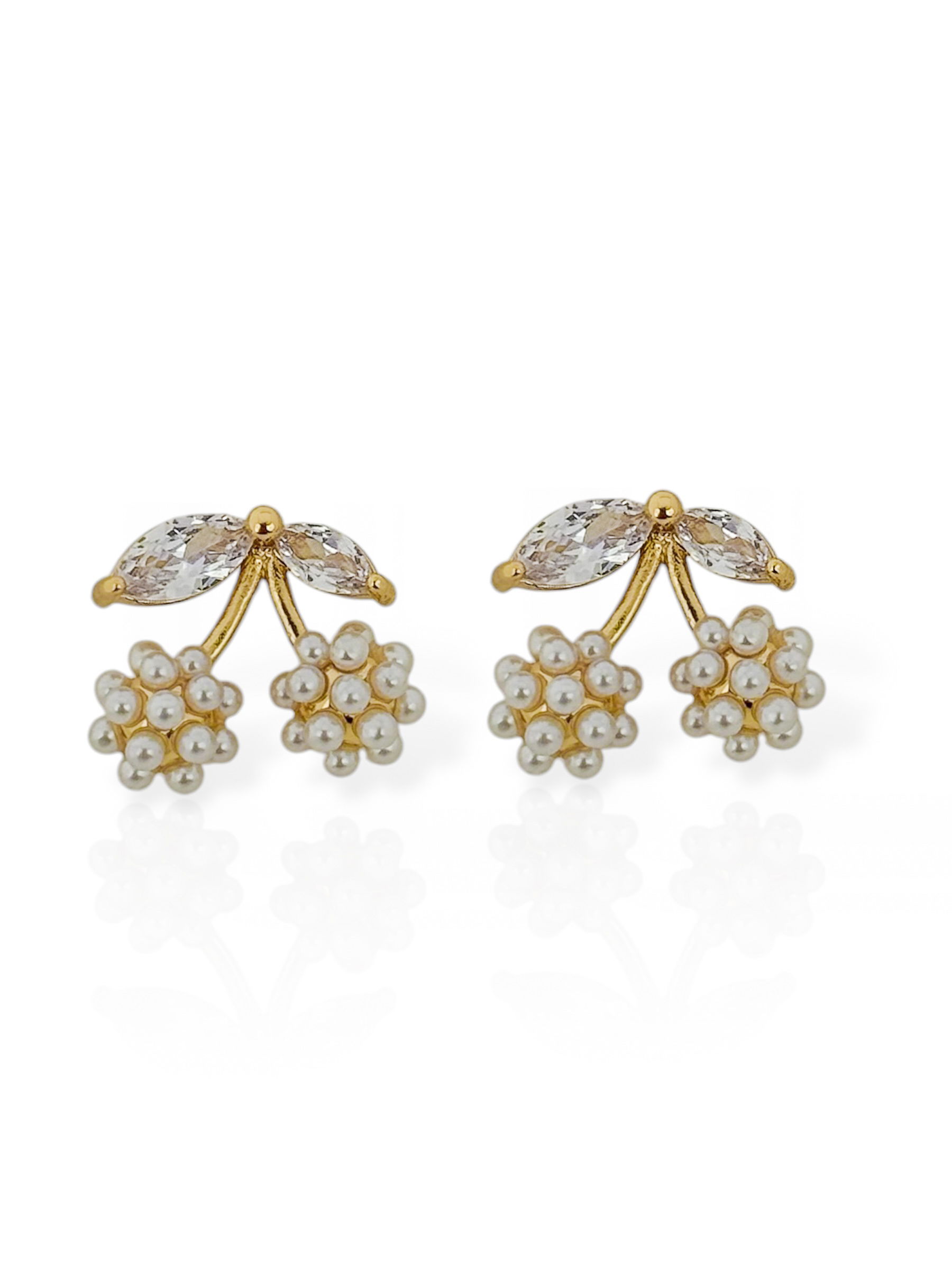 Brinco Folheado a Ouro 18k e Prata Design Cereja Com Cristal
