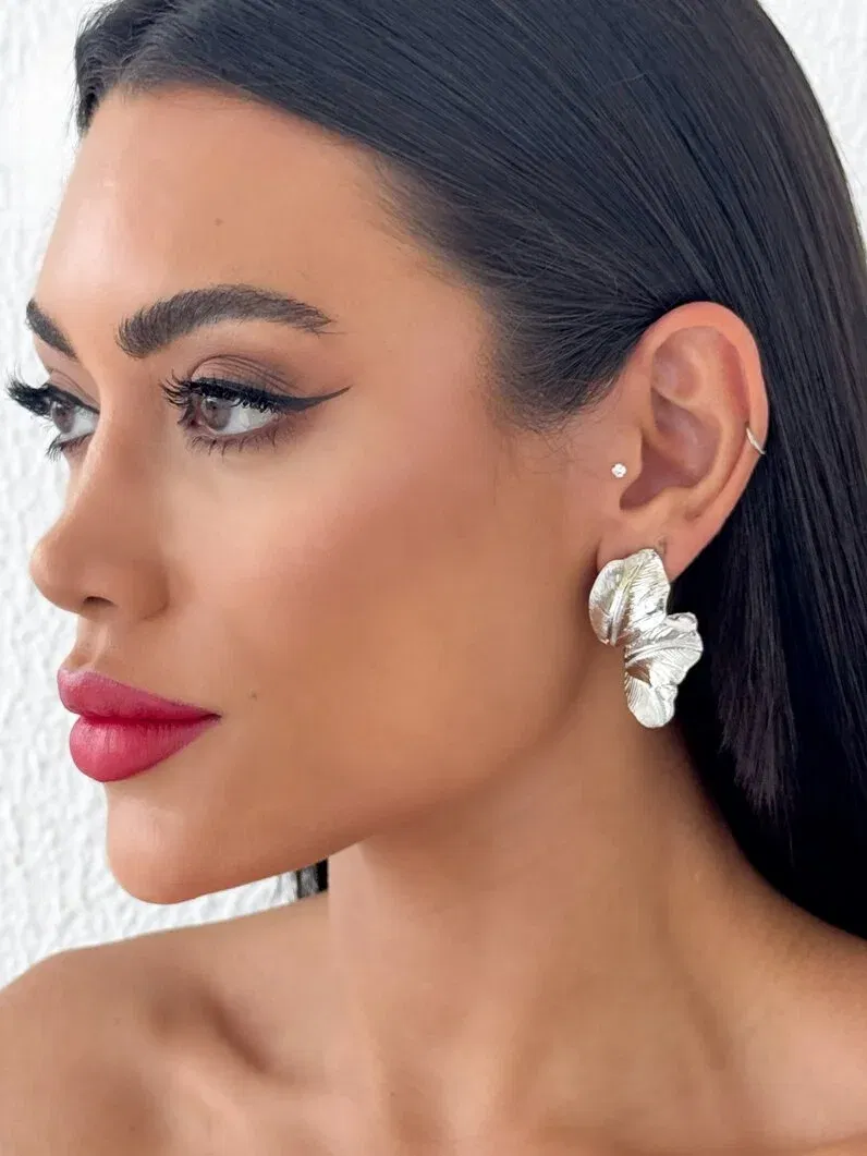 Brinco Folheado a Ouro 18k e Prata Design Folha Texturizada