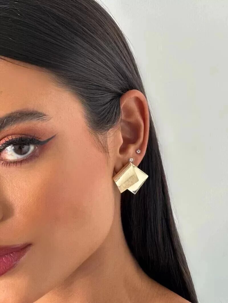 Brinco Folheado a Ouro 18k e Prata Design Moderno