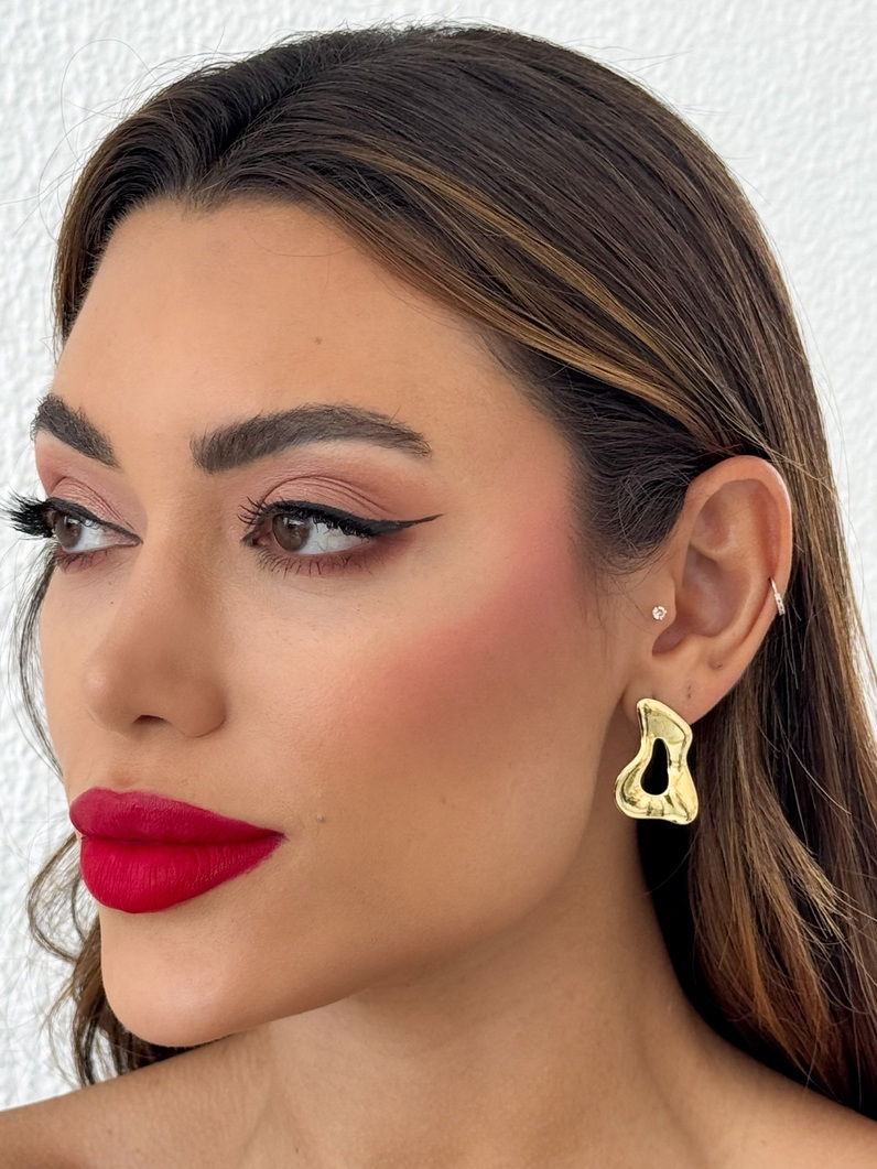 Brinco Folheado a Ouro 18k e Prata Design Organico Liso e Vazado