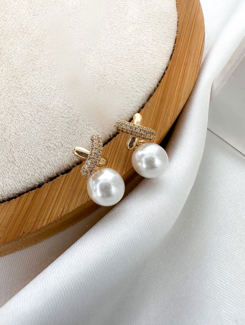 3. Brinco Folheado a Ouro 18k e Prata Design X com Pérola