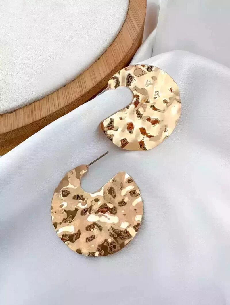 BRINCO FOLHEADO A OURO 18K E PRATA DESIGNER MARTELADO.