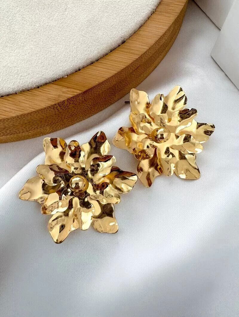 Brinco Folheado a Ouro 18k e Prata Doze Pétalas Marteladas