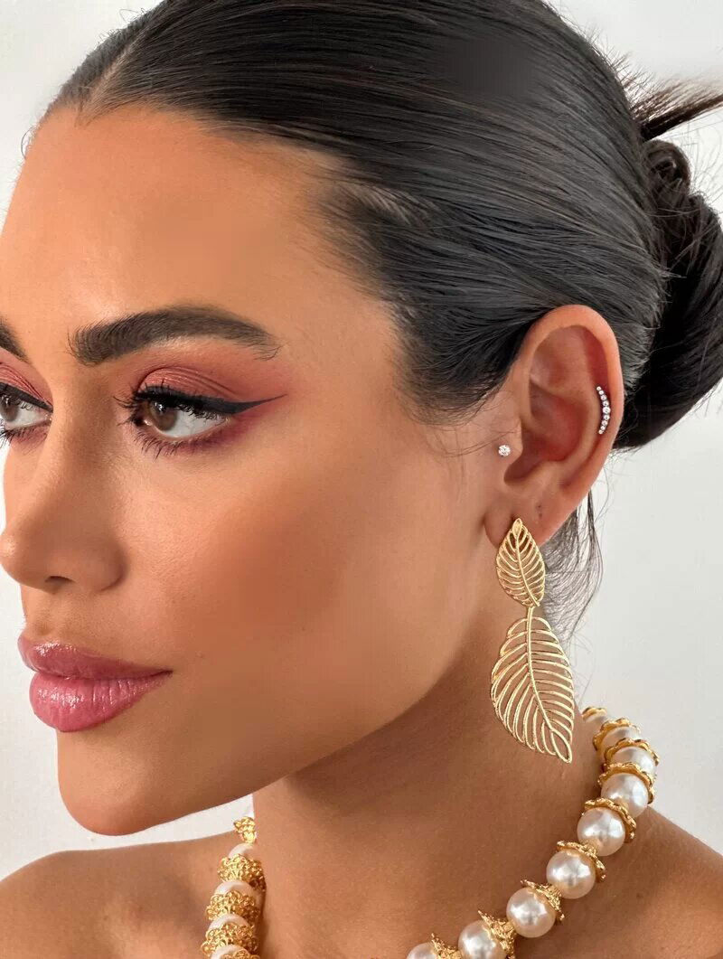 3. Brinco Folheado a Ouro 18k e Prata Duas Folhas Vazadas