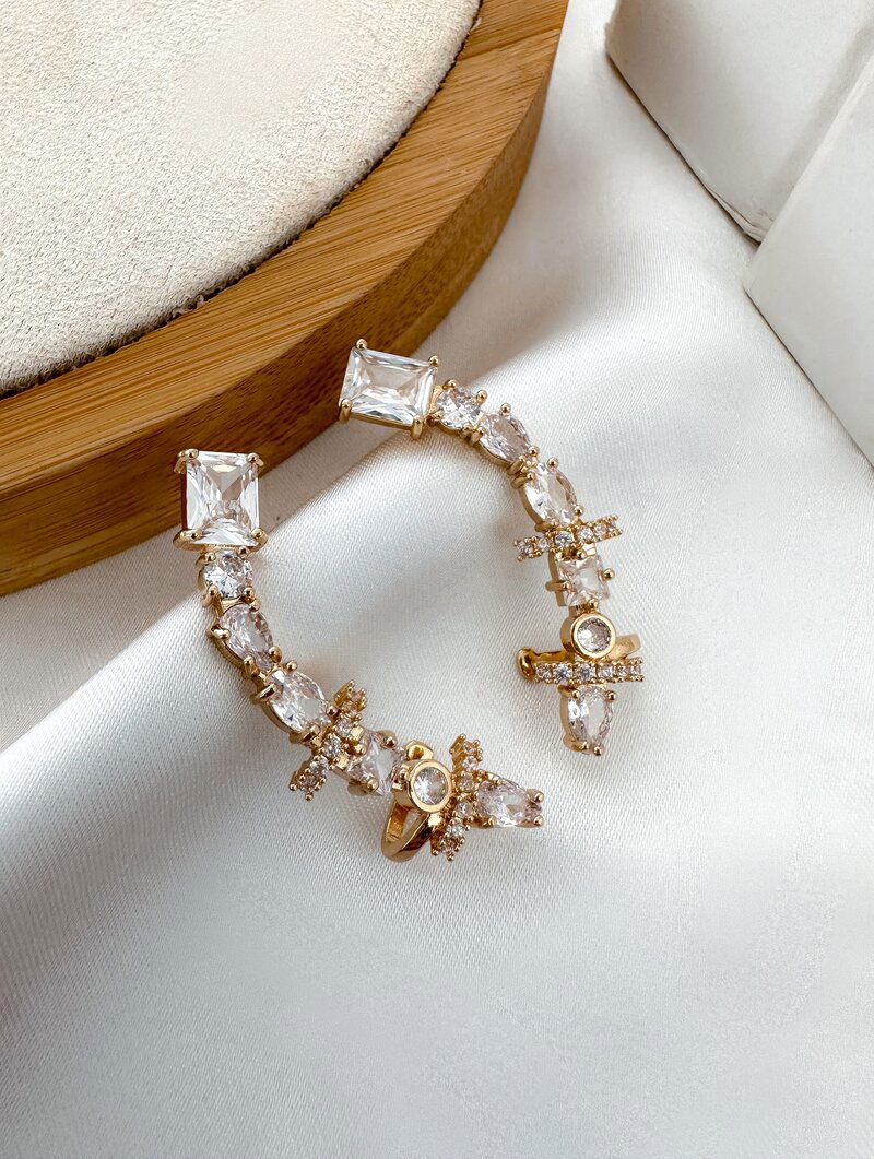 Brinco Folheado a Ouro 18k e Prata Ear Cuff com Pedraria