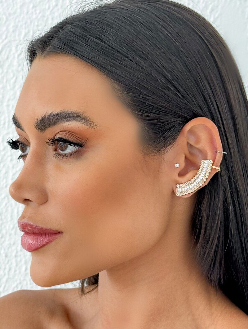 Brinco Folheado a Ouro 18k e Prata Ear Cuff com Zircônias e Navetes Cristais