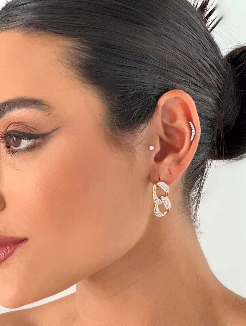 3. Brinco Folheado a Ouro 18k e Prata Elos Cravejados