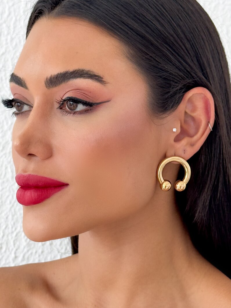 3. Brinco Folheado a Ouro 18K e Prata Esfera Dupla