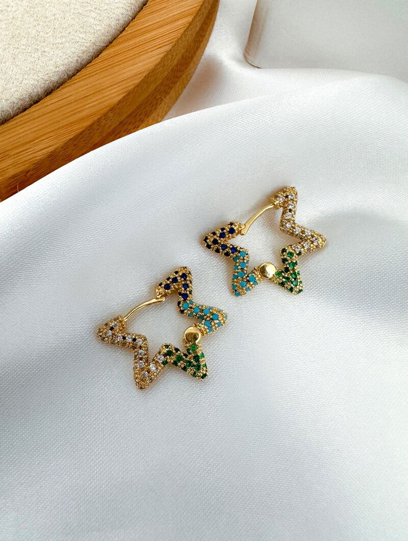 3. Brinco Folheado a Ouro 18k e Prata Estrela Cravejada com Fecho