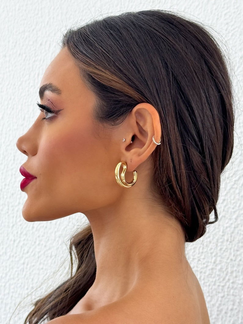 2. Brinco Folheado a Ouro 18k e Prata Fio Gota Vazada