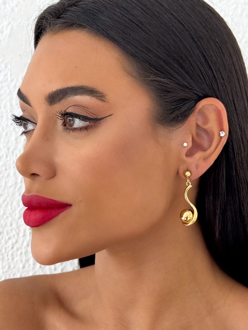 3. Brinco Folheado a Ouro 18k e Prata Fio Ondulado Com Esfera