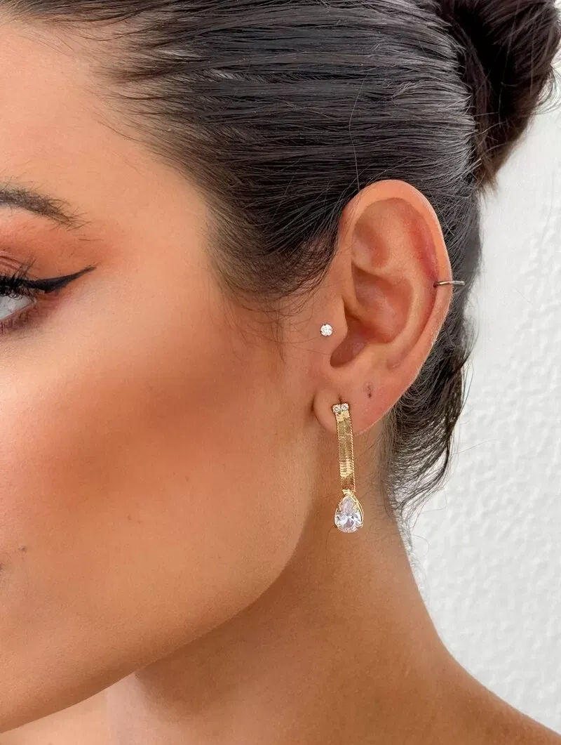 3. Brinco Folheado a Ouro 18k e Prata Fita Laminada com Gota de Zircônia
