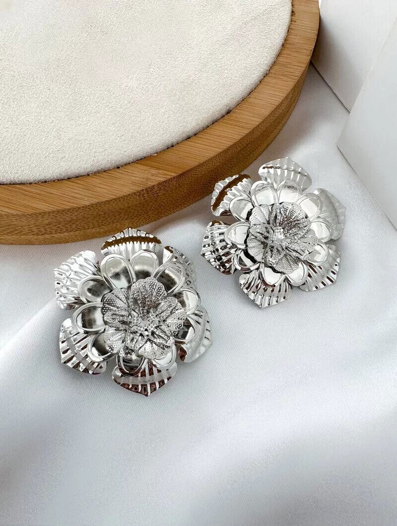 2. Brinco Folheado a Ouro 18k e Prata Flor Camadas