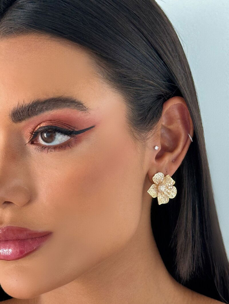 3. Brinco Folheado a Ouro 18k e Prata Flor Cravejada com Micro Zircônias