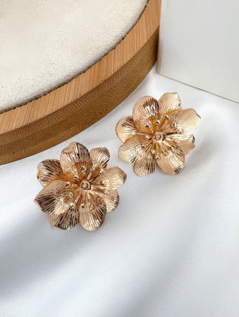 3. Brinco Folheado a Ouro 18k e Prata Flor Duas Camadas com Centro Trabalhado