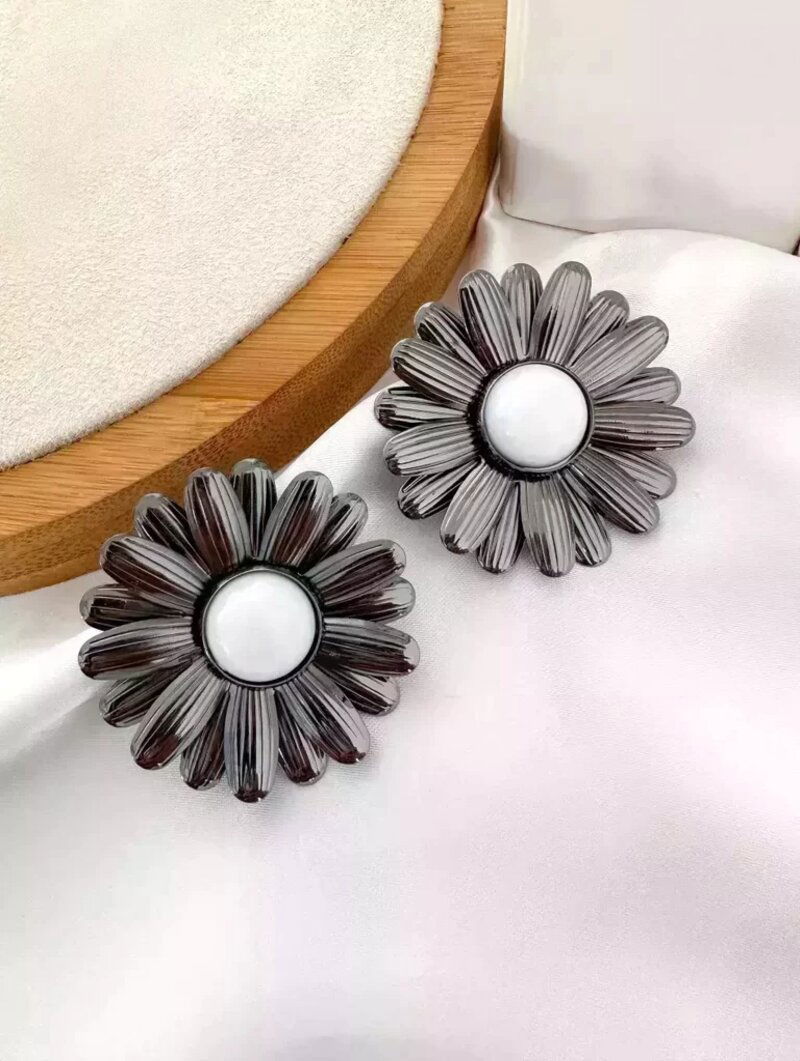 3. brinco folheado a ouro 18k e prata flor girassol.