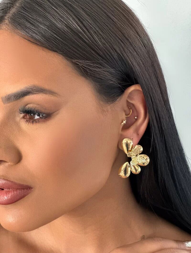 3. Brinco Folheado a Ouro 18K e Prata Flor Perfil com Borboleta