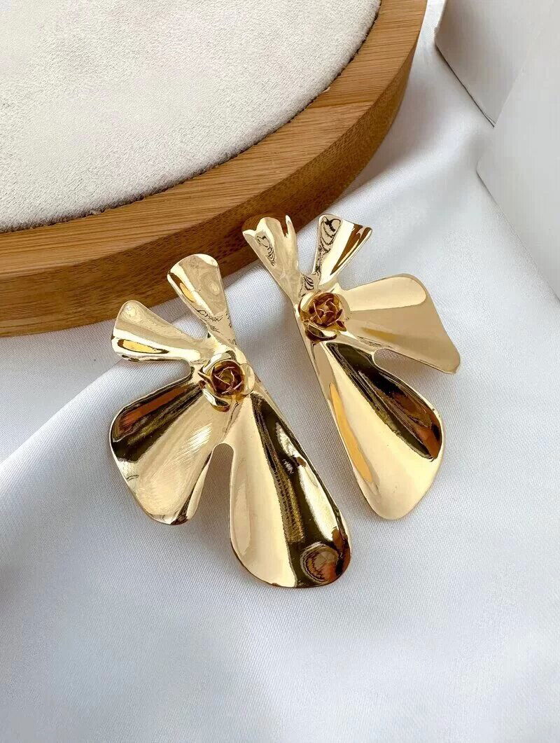 3. Brinco Folheado a Ouro 18k e Prata Flor Quatro Pétalas Marteladas