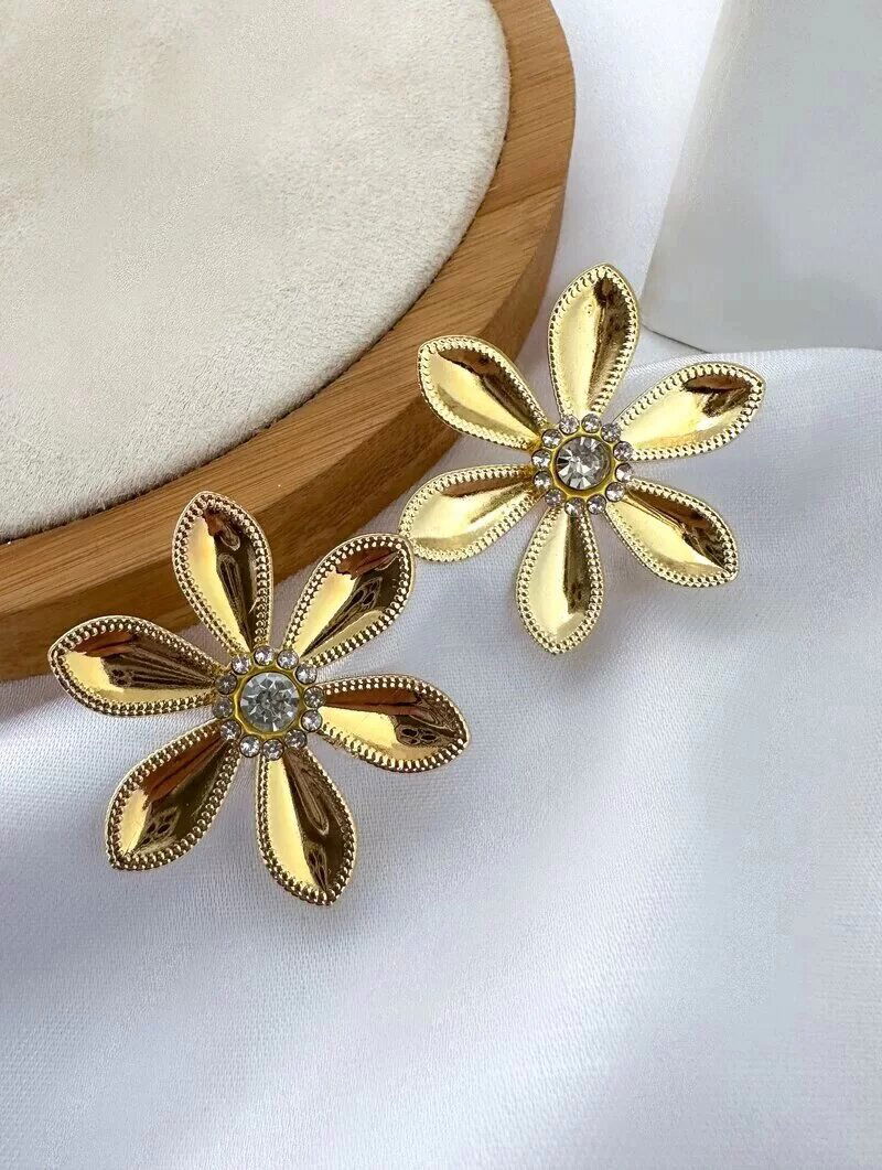 3. Brinco Folheado a Ouro 18k e Prata Flor Seis Pétalas com Zircônia Central
