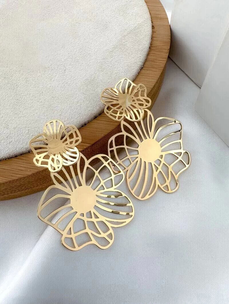 3. Brinco Folheado a Ouro 18k e Prata Flor Vazada com Ponteira