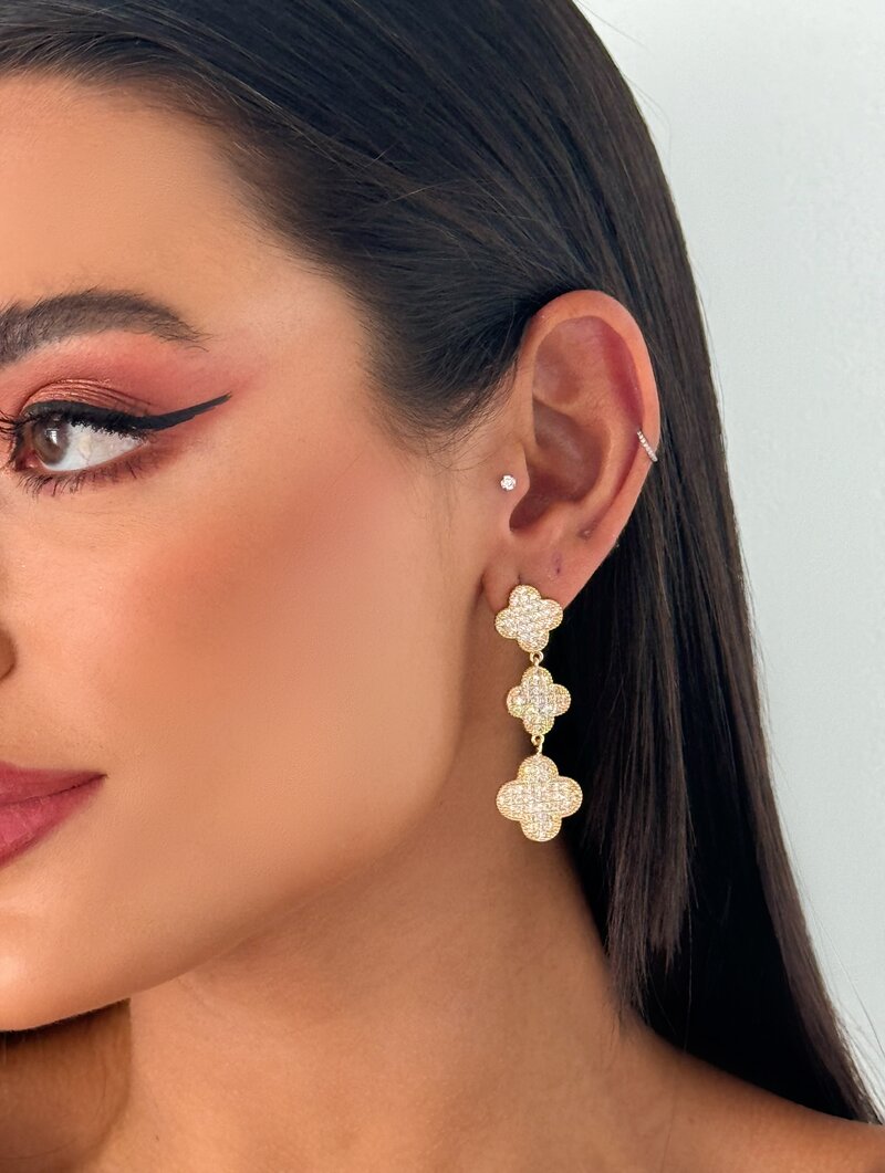 Brinco Folheado a Ouro 18k e Prata Flores Cravejadas (Inspiração)