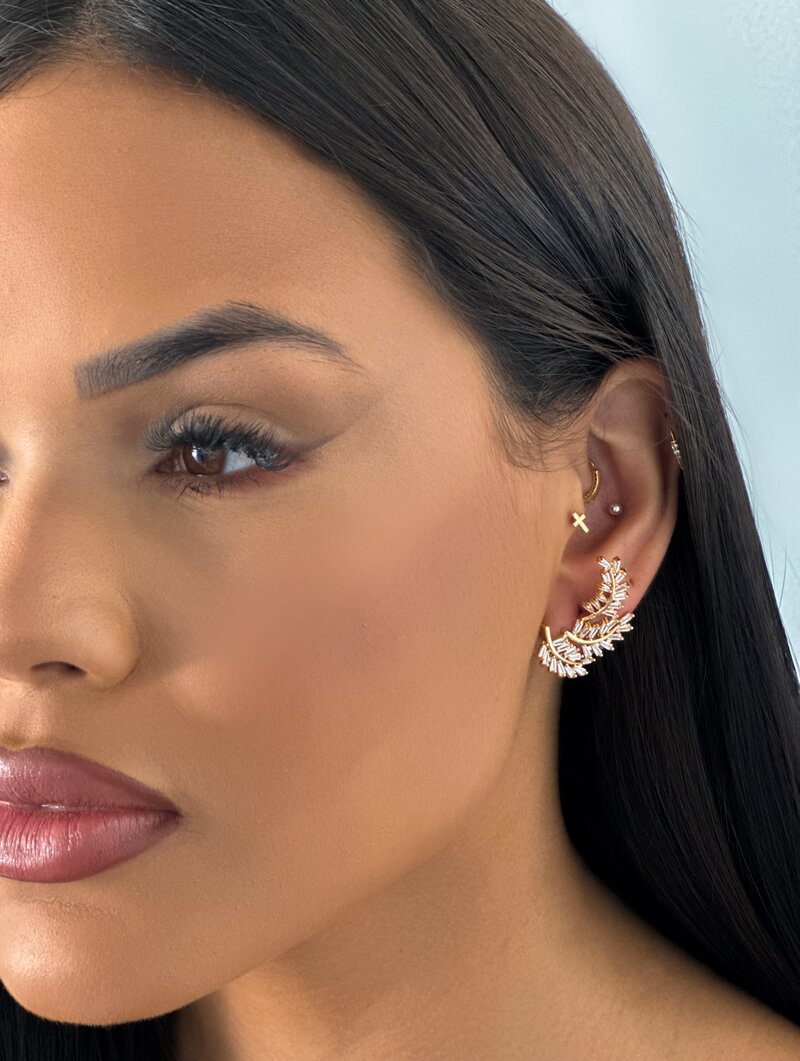 3. Brinco Folheado a Ouro 18k e Prata Folhas de Zircônias