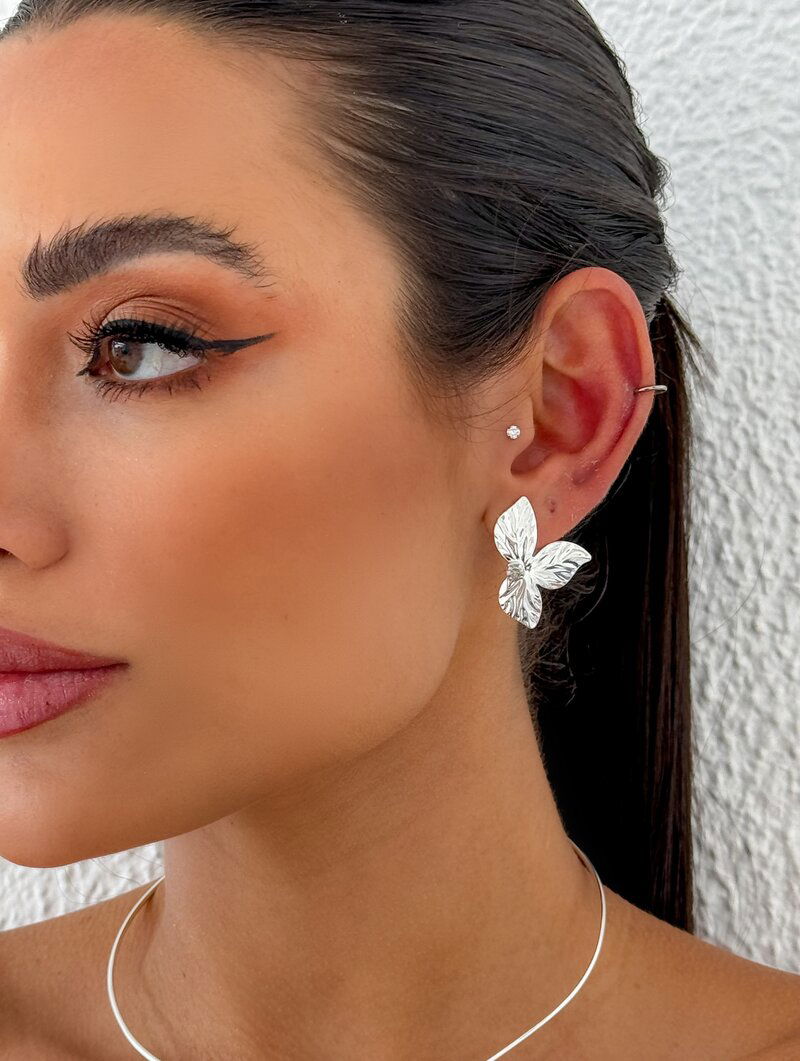 3. Brinco Folheado a Ouro 18k e Prata Folhas Texturizadas