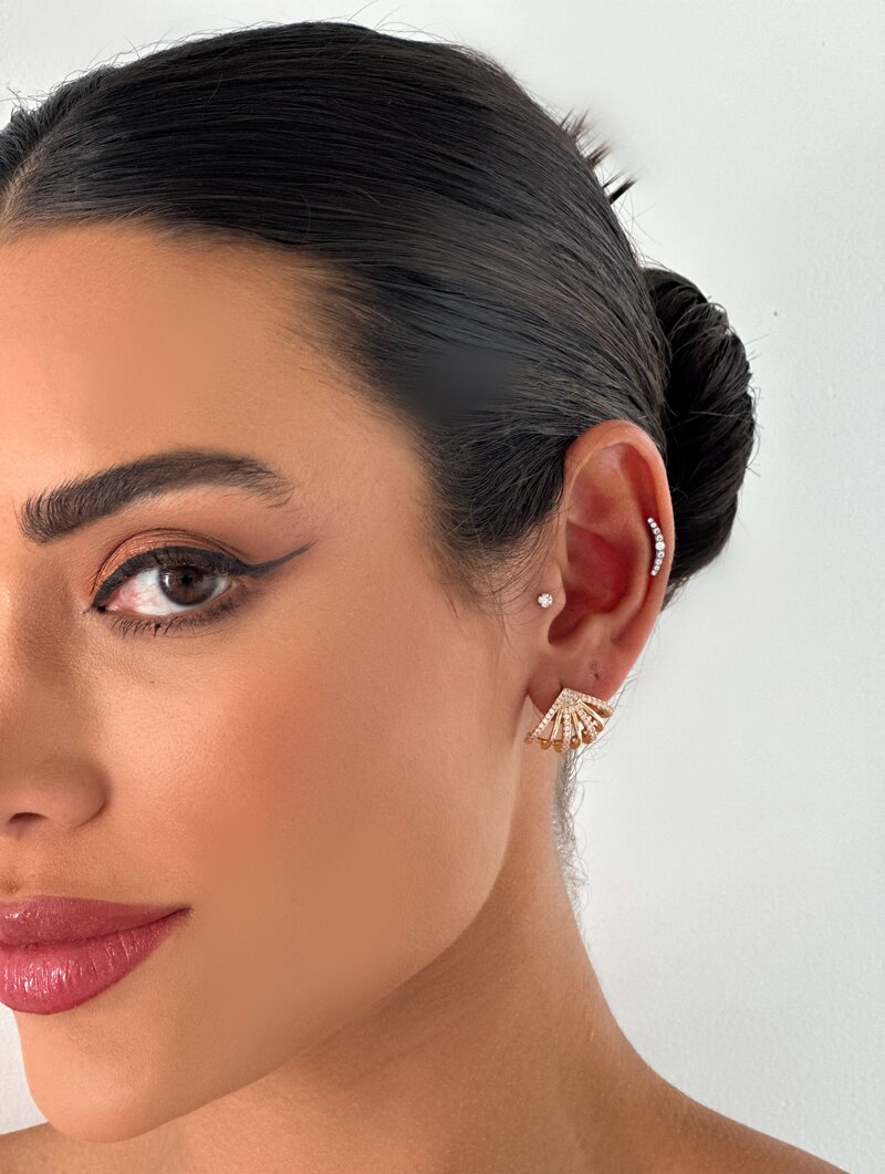 3. Brinco Folheado a Ouro 18k e Prata Formato Concha com Fios Cravejados