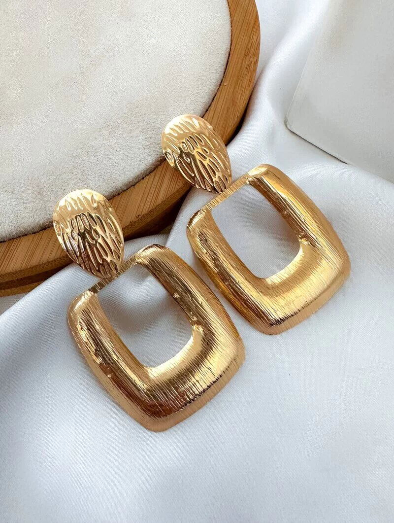 3. brinco folheado a ouro 18k e prata formato geométrico escovado vazado