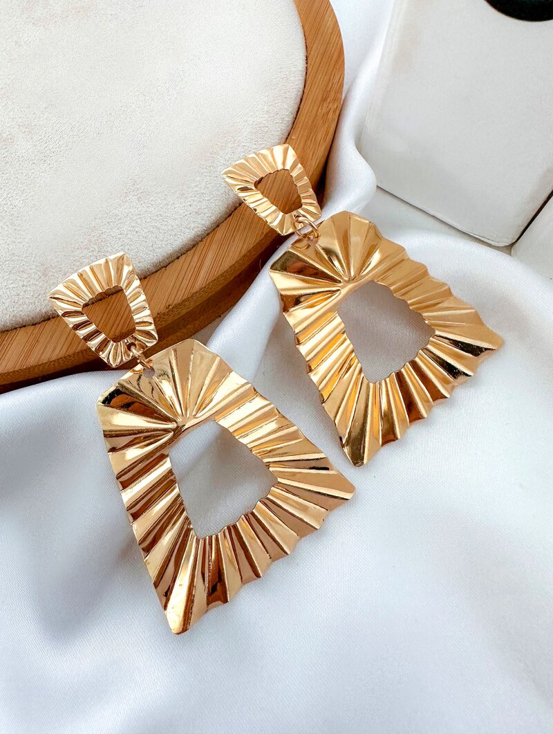 Brinco Folheado a Ouro 18k e Prata Formato Geométrico Martelado