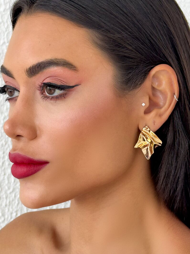 3. Brinco Folheado a Ouro 18k e Prata Formato Geométrico Martelado