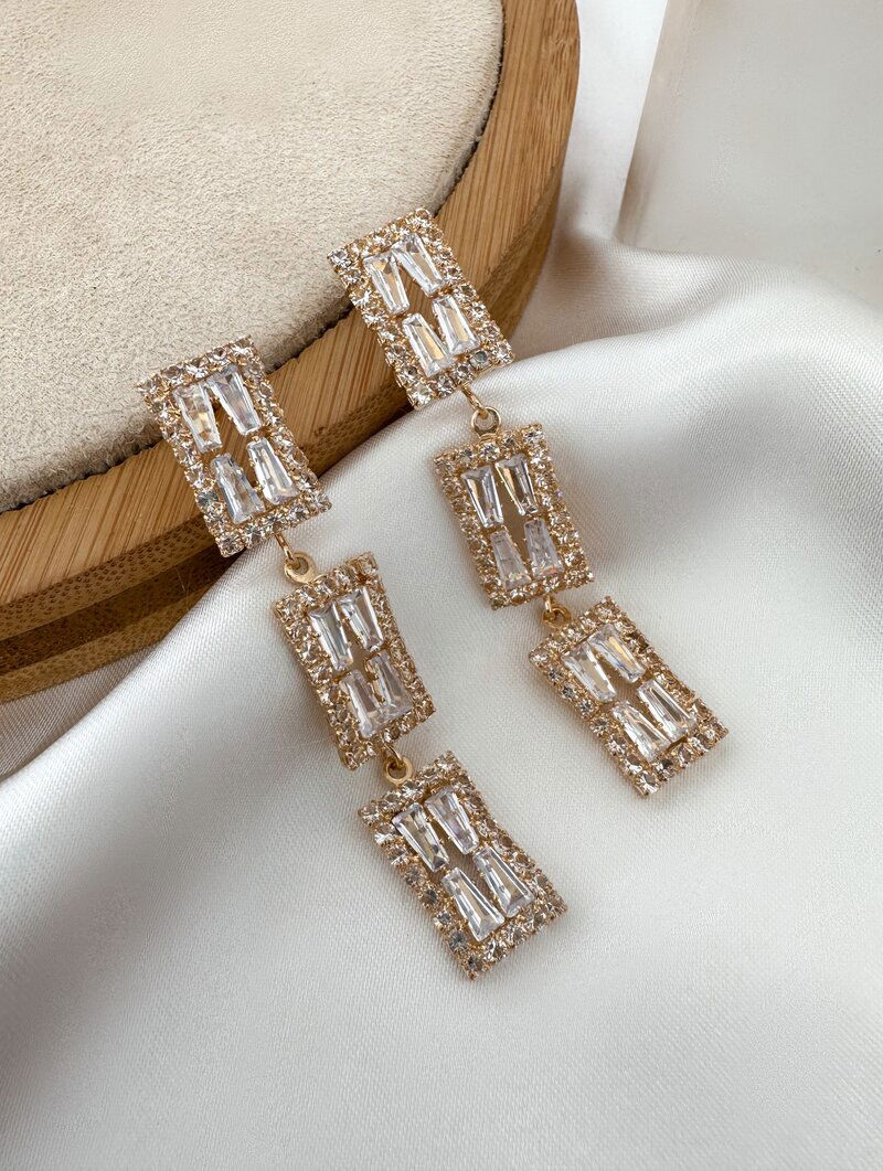 3. Brinco Folheado a Ouro 18k e Prata Formato Retangular com Micro Zircônias