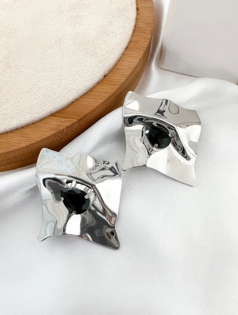3. Brinco folheado a ouro 18k e prata geométrico com gota de zircônia